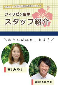 フィリピンへの留学のみでなくその後の就職、他国への留学、ワーキングホリデー等でもフィリピン留学プロスタッフが体験しお伝えできることでしたらなんでもお伝えいたします。