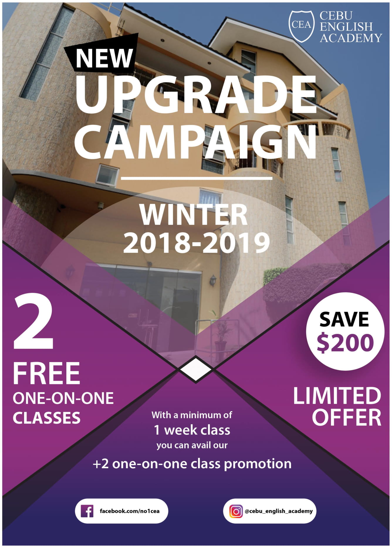 2018年11月、12月、2019年1月、2月、3月、4月にご留学を開始される場合は2コマ マンツーマンを追加します^^