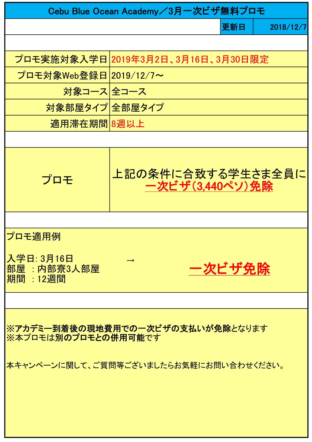 3月入学者向けの一次ビザ無料のプロモのご案内!
