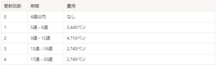 ※3回目の更新以降は毎回2,740phpが必要となります