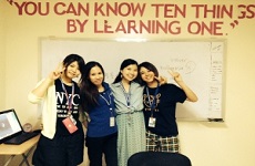 はい。ビギナークラスで、中国人のチャーミングなファッションデザイナー、ベトナム人と中国人のエリート・ビジネスマン、サウジアラビアの高校生たち、韓国人で親子留学に来ているママと和気あいあい、とても仲良くなった。