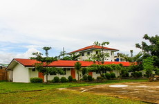 開放的な作りの校舎と学校は一つの敷地内にあります。