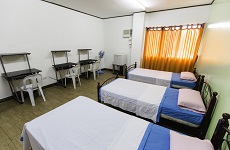 バコロド・シライ国際空港から車で20分、メインストリート沿いにあり、寮の目の前にはタイマッサージ店とカフェ、周りにコンビニエンスストアやレストラン、バーなどもあり、近くのショッピングモールまでは徒歩5分という便利な立地です。