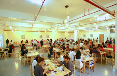 学校内にカフェ、レストランあり。(お酒も提供されますが、ビールは1人2本まで) |